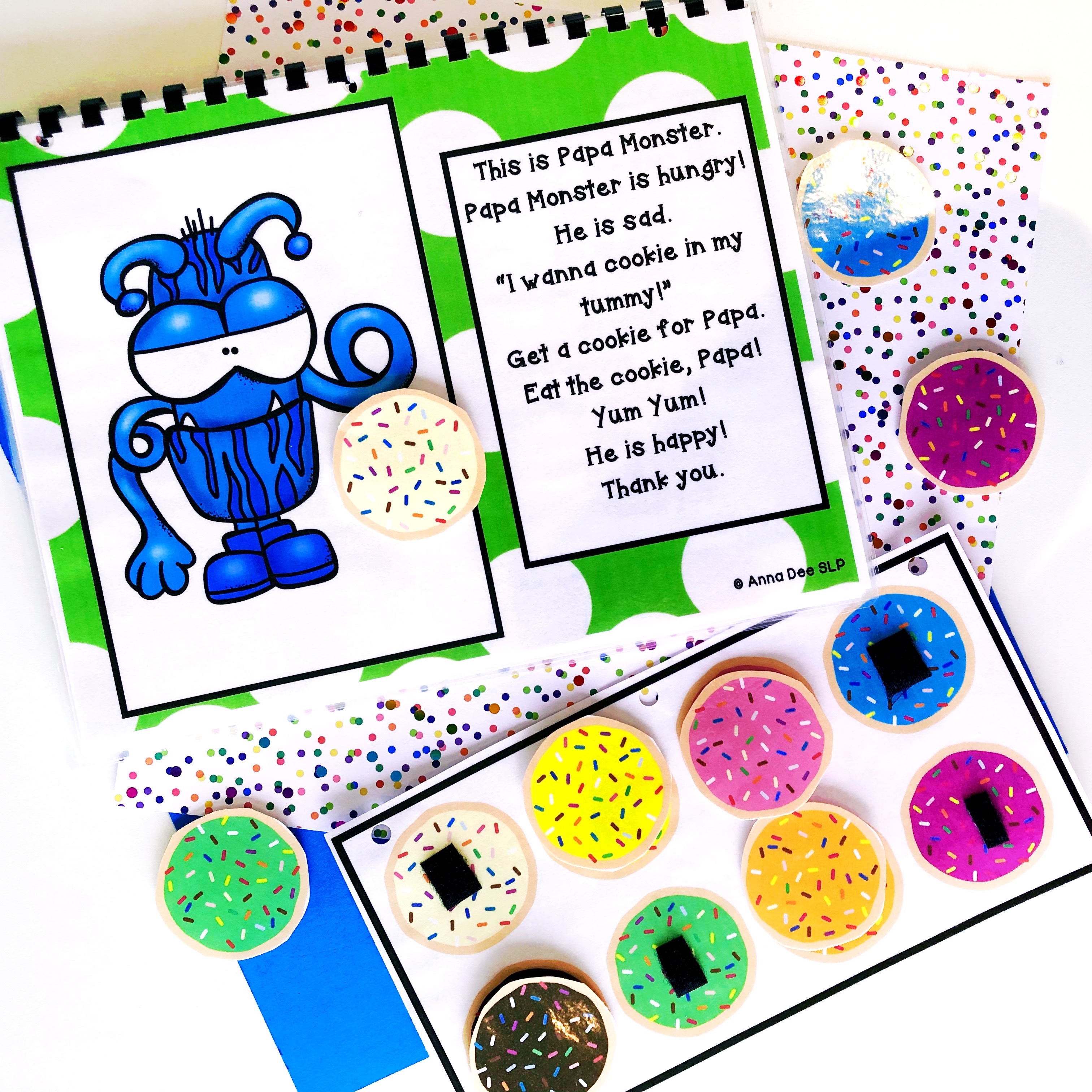 You can target articulation (e.g., /p/, /b/, /m/), expressive language, WH-questions, and sequencing — all in one book. Less prep, more progress.